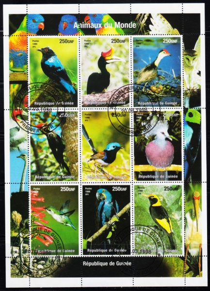 • FOLHA DE SELOS – GUINÉ – 1998 (TEMÁTICA: AVES). USADO.