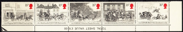 • SELO: INGLATERRA: 1984 – (TEMÁTICA: TRANSPORTE/CARRUAGEM). MINT. (TIRA). SÉRIE COMPLETA.