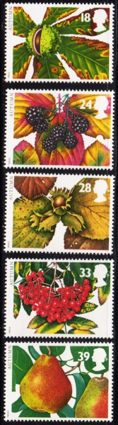 • SELO: INGLATERRA: 1993 – (TEMÁTICA: FRUTAS COMESTIVEIS). MINT. SÉRIE COMPLETA.