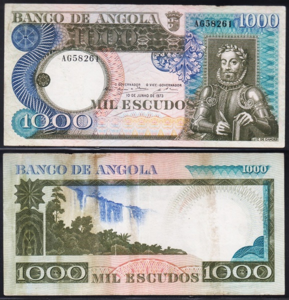 • CÉDULA DA ANGOLA 1.000 ESCUDOS 1973 #103 FLOR DE ESTAMPA ESTIMATIVA R$ 250,