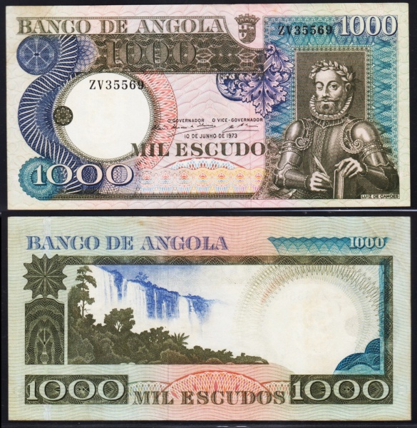 • CÉDULA DE ANGOLA 1.000 ESCUDOS 1973 #108 FLOR DE ESTAMPA ESTIMATIVA CATALOGO R$ 270,