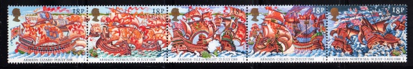 • SELO: INGLATERRA: 1988  (TEMÁTICA: BATALHA NAVAL). MINT (TIRA). SÉRIE COMPLETA.