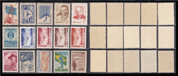 • SELO: BRASIL – ANOS DIVERSOS – REPÚBLICA (AÉREO E COMEMORATIVOS). 15 SELOS. MINT E NOVO.