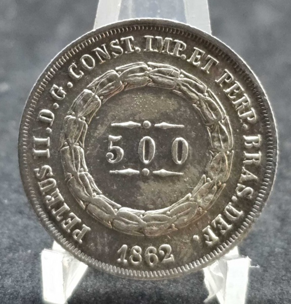 • MOEDA DE PRATA 500 RÉIS 1862 P-595  SOB/FLOR DE CUNHO ESTIMATIVA CATALOGO R$ 125,