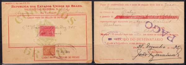 • VALE POSTAL: BRASIL – 1925. VALE POSTAL NO VALOR DE 30$000. DO RIO DE JANEIRO/RJ (PRAÇA DA BANDEIRA) – DATADO DE 16.12.1925. COM SELOS RHM: D-26 + RHM: 204.