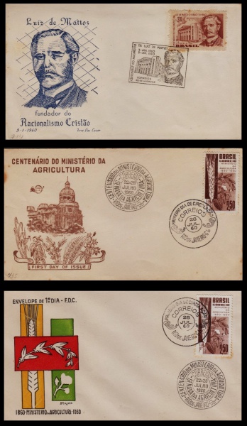 • FDC: BRASIL – 1960 (TEMÁTICA: AGRICULTURA/DOUTRINA). 3 FDC PARTICULAR COM CARIMBO COMEMORATIVO E OU DE PRIMEIRO DIA DE CIRCULAÇÃO.