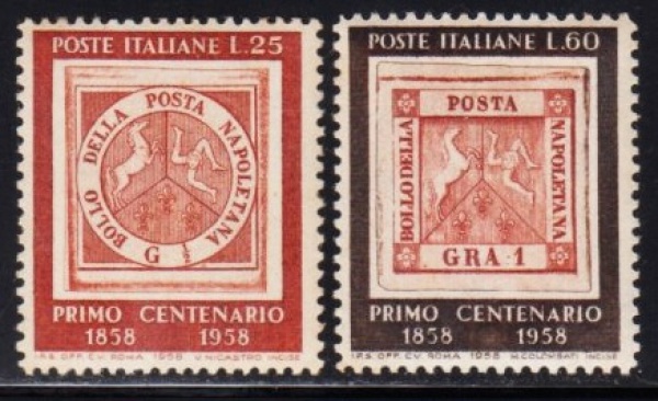 • SELO: ITALIA – 1958 (CENTENÁRIO DO SELO DE NAPOLI). SÉRIE COMPLETA. MINT.