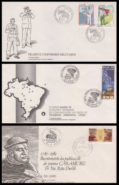 • FDC: BRASIL – 1981/1986/1988. COM CARIMBO COMEMORATIVO E DE PRIMEIRO DIA DE CIRCULAÇÃO.