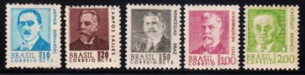• SELO REGULAR: BRASIL 1967/1968. RHM: 532/536 – ANTIGOS PRESIDENTES DA REPUBLICA. MINT. SÉRIE COMPLETA. VL. CAT. 105.