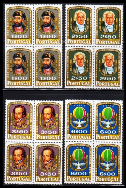 • QUADRA  PORTUGAL  1972 (TEMÁTICA: LUBRAPEX/DESCOBRIMENTO E INDEPENDENCIA DO BRASIL). MINT.