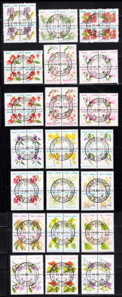 • SELO: REGULAR: BRASIL: 1989/1990/1991/1992/1993. RHM: 669/674  676/681  682  684/688  693/694  696 (FLORA BRASILEIRA). SÉRIE COMPLETA EM QUADRA. USADA. COM CARIMBO DE PRIMEIRO DIA DE CIRCULAÇÃO.