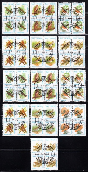 • SELO: REGULAR: BRASIL: 1994. RHM: 700/705 – 710/716 (PASSAROS URBANOS). SÉRIE PARCIAL. USADA. COM CARIMBO DE PRIMEIRO DIA DE CIRCULAÇÃO.