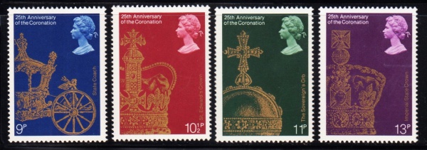 • SELO: INGLATERRA: 1978 – TEMÁTICA: JUBILEU DE PRATA DA COROAÇÃO DA RAINHA ELISABETH II. MINT. SÉRIE COMPLETA.