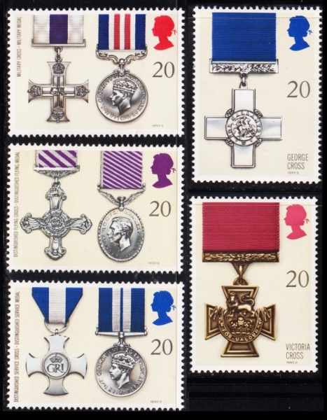 • SELO: INGLATERRA: 1990 – (TEMÁTICA: MEDALHAS). MINT. SÉRIE COMPLETA.